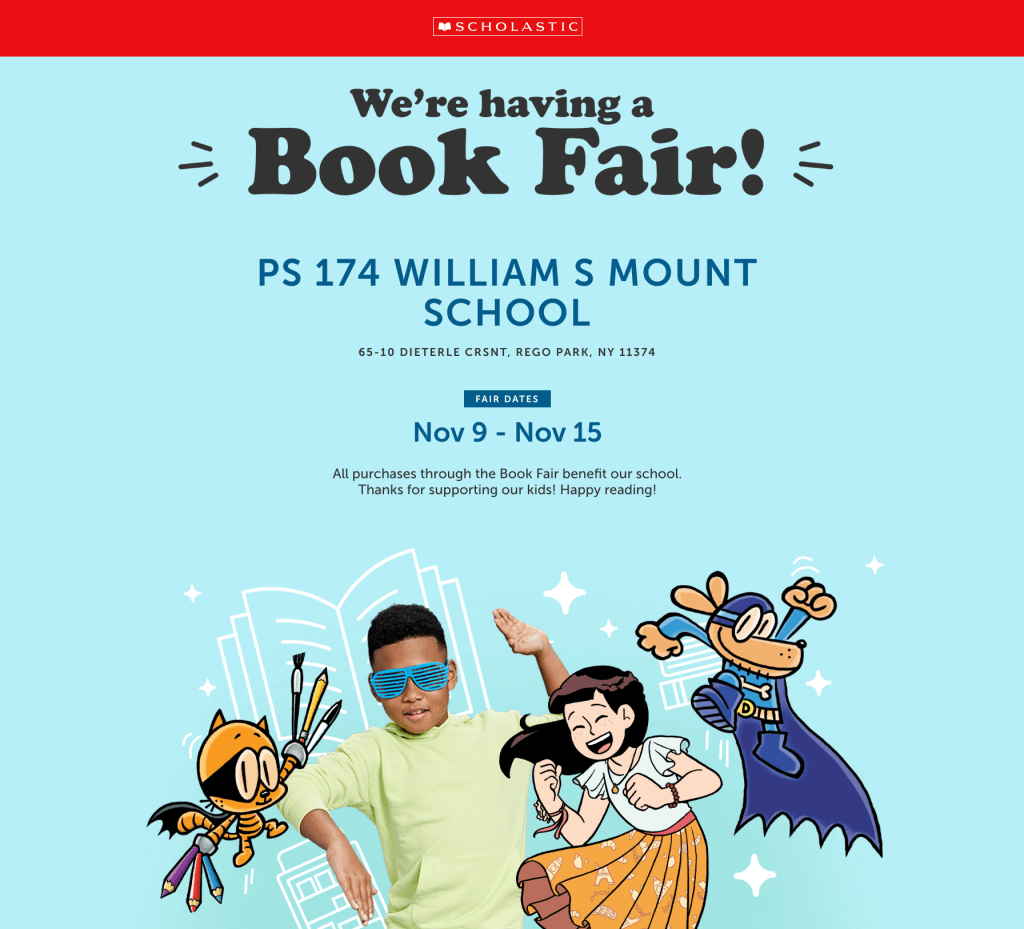 All purchases through the Book Fair benefit PS 174 fall residency programs. Thanks for supporting our kids! Happy reading!