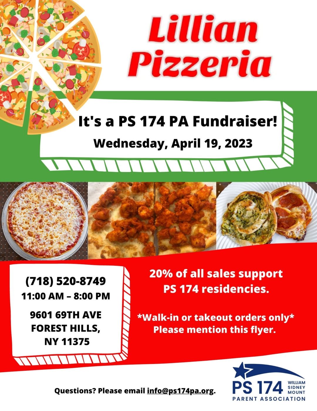 Thank you Lillian Pizzeria for a successful fundraiser and for supporting our school and students! Share this: Click to print (Opens in new window) Print Click to email a link to a friend (Opens in new window) Email Click to share on Facebook (Opens in new window) Facebook Click to share on X (Opens in new window) X Click to share on Tumblr (Opens in new window) Tumblr Click to share on Pinterest (Opens in new window) Pinterest Click to share on WhatsApp (Opens in new window) WhatsApp Like Loading... Published by P.S. 174 PA View all posts by P.S. 174 PA