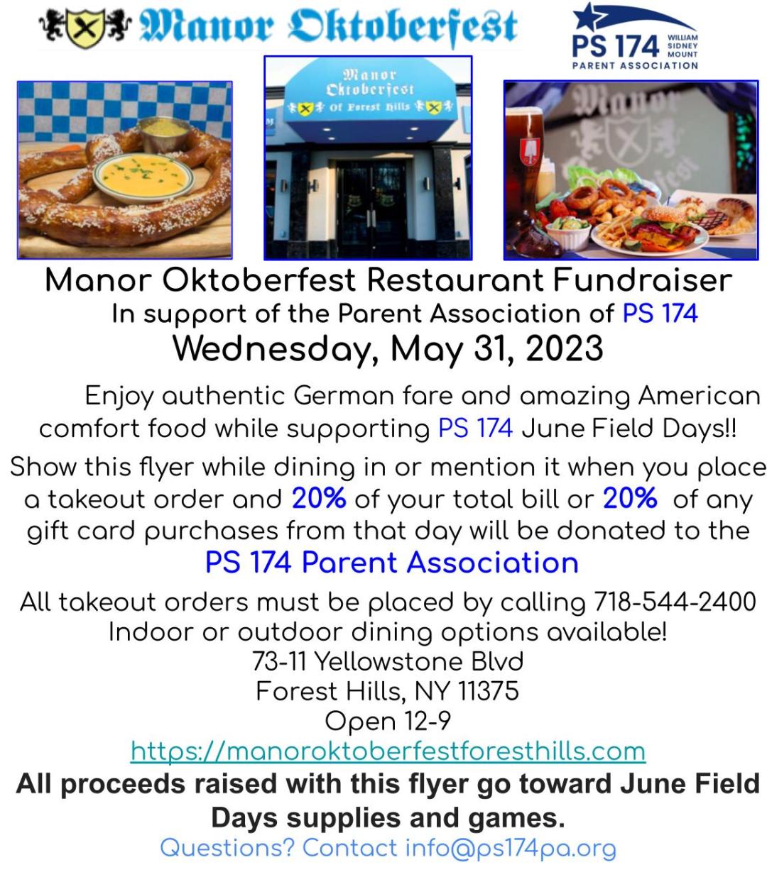 Enjoy authentic German fare and amazing American comfort food while supporting PS 174 June Field Days!
