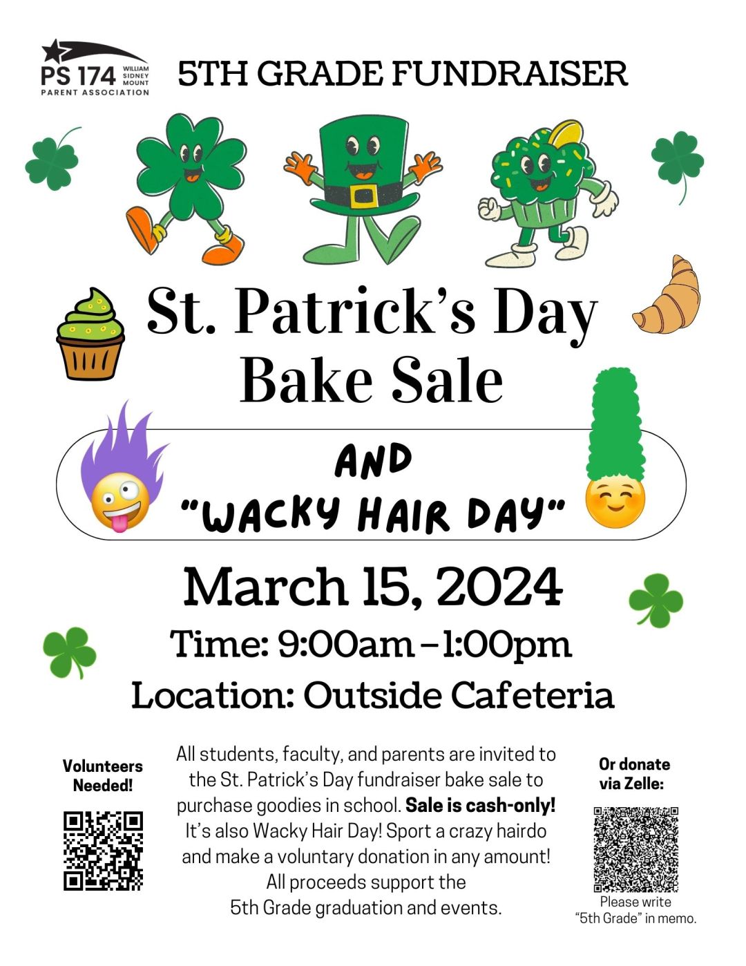 All students, faculty, and parents are invited to the St. Patrick’s Day fundraiser bake sale to purchase goodies in school. Sale is cash-only!