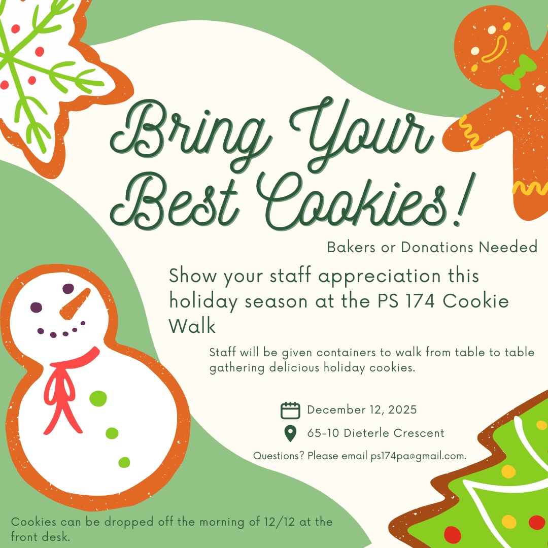 Show your staff appreciation this holiday season at the PS 174 Cookie Walk!