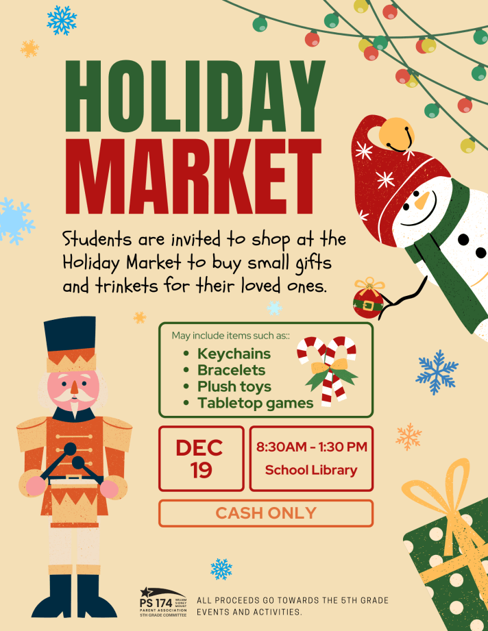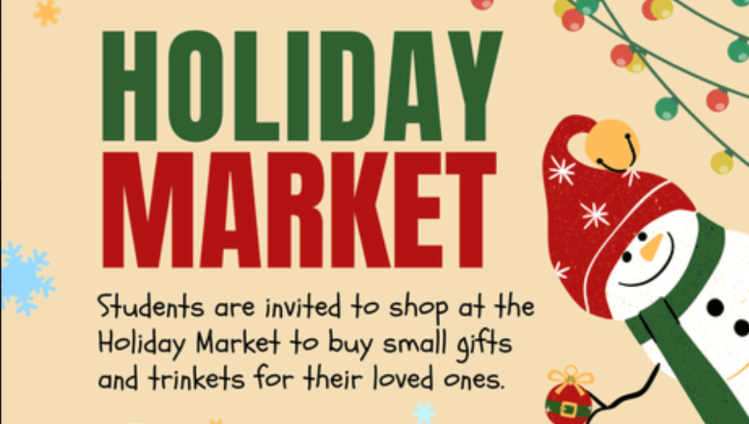 Students are invited to shop at the Holiday Market to buy small gifts and trinkets for their loved ones.