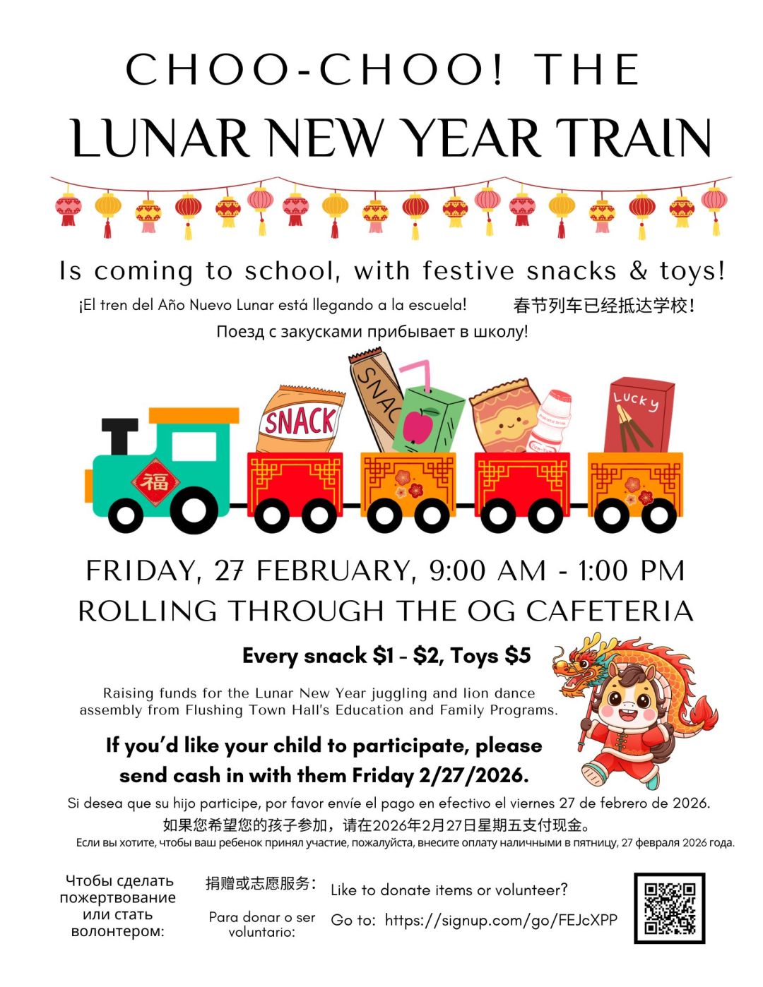 Raising funds for the Lunar New Year juggling and lion dance assembly from Flushing Town Hall’s Education and Family Programs.